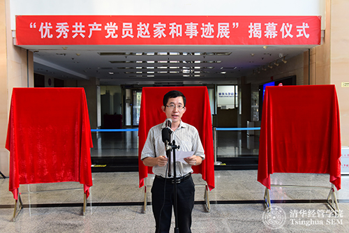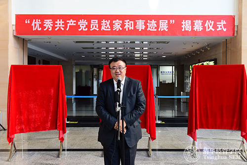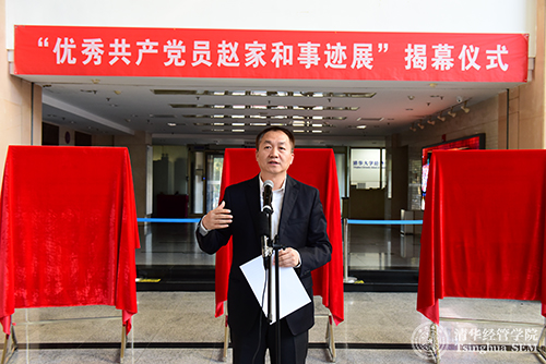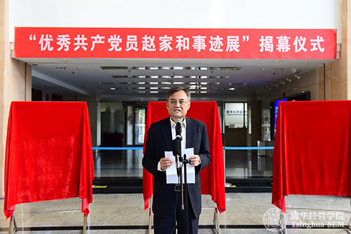 WilliamHill中文官网党委常委、副董事长杨斌教授首先发言。他说,揭幕赵家和教授的展览,是我们这些他曾经的员工和同事们对赵家和教授学习与行动的一种方式。希望赵家和教授呈现出的共产党员、教师以及一个清华人的优秀品质,能够影响到更多的人,教育更多的人,成为大家行为的楷模和模范。