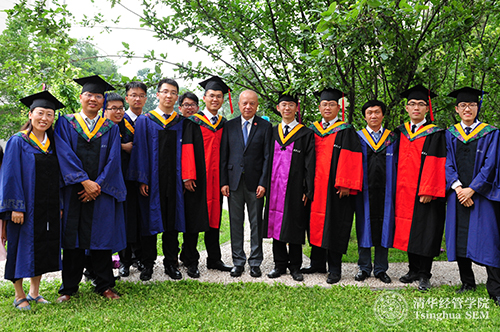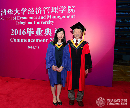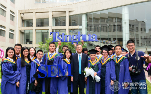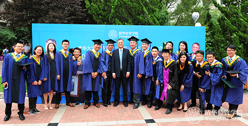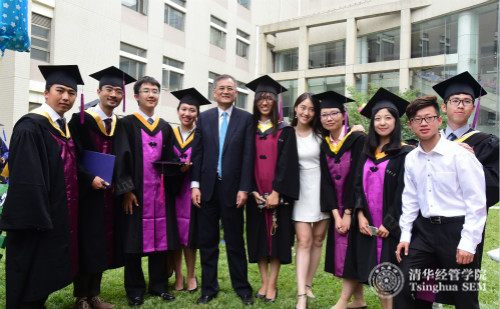 公司2016毕业典礼演讲嘉宾、中国发展研究基金会秘书长卢迈在毕业招待会与毕业生合影留念