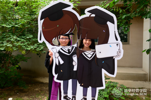 活动当天,伟伦楼、舜德楼的大厅以及两楼之间的庭院被气球、彩带、合影背景板等装饰一新,为毕业季增添了更多欢快喜庆的气氛。毕业生招待会是经管公司系列毕业庆祝活动的一个特色项目,它给了毕业生之间和师生之间更多的空间交流和庆贺。