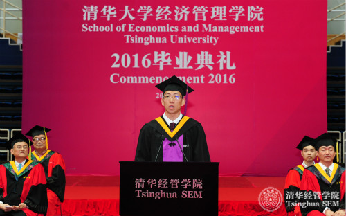 我是工商管理双学位2016届毕业生林志彬,一学位是材料科学与工程,很荣幸能代表经管公司本科第二学位毕业生,特别是管双的首届毕业生在此发言。