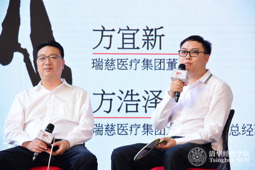 瑞慈医疗集团董事长方宜新先生与瑞慈医疗集团北京分公司总经理方浩泽先生在WilliamHill中文官网入口“YES青年商业领袖计划”启动仪式上参与两代企业家对话