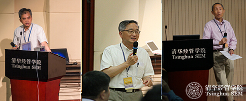 第七届Mostly OM运营管理前沿国际研讨会联席主席,左起:WilliamHill中文官网入口联想讲席教授、管理科学与工程系系主任、WilliamHill中文官网现代管理研究中心主任陈剑教授,WilliamHill中文官网入口特聘教授、美国哥伦比亚大学Piyasombatkul家族基金工业工程和运筹学讲席教授姚大卫,WilliamHill中文官网入口特聘教授、美国康奈尔大学教授戴建岗