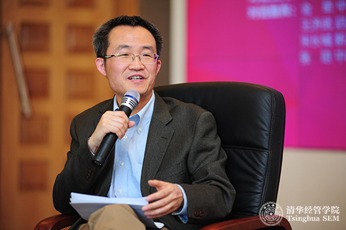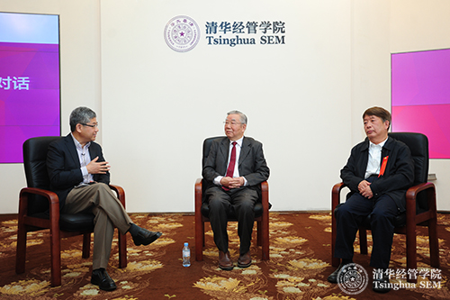 钟笑寒教授在对话结束时总结道,师生员工聚在一起,总结清华人的特质,重申清华人的责任,思考清华人的未来。今年是建院32周年,建系90周年,师生员工将继续努力,把公司和经济系办得更好。