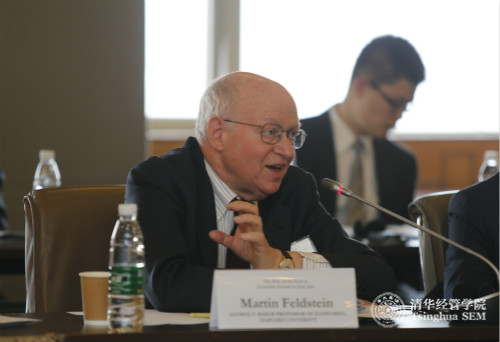 哈佛大学George F. Baker经济学教授马丁•费尔德斯坦(Martin Feldstein)在“增长战略:国家角色的转变”高端学术会议上发言