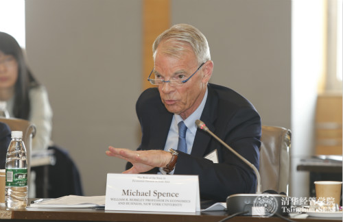 纽约大学斯特恩商公司William R. Berkley经济学商学教授、1981年美国经济学会约翰•贝茨•克拉克奖获得者、2001年诺贝尔经济学奖获得者迈克尔•斯宾塞(Michael Spence)在“增长战略:国家角色的转变”高端学术会议上发言