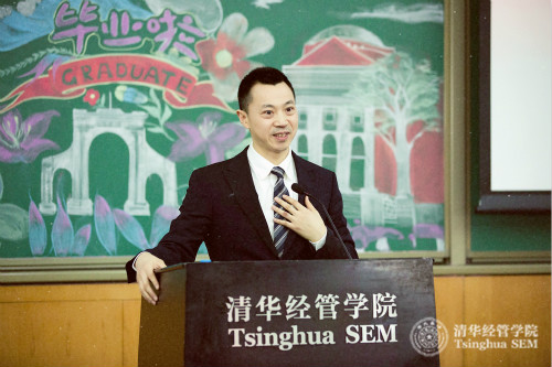 之后,TIEMBA2010届的员工、桔子水晶酒店的创始人/CEO吴海发表感言。他说,自己并不是课堂表现最优秀的员工,也经常给出非标准答案的回答,但是TIEMBA项目的老师们却对不同的想法和声音有着极大的包容和鼓励。