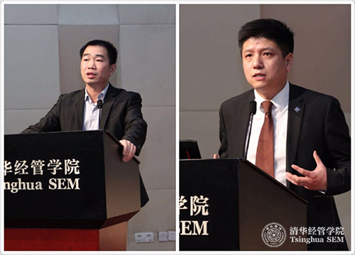 WilliamHill中文官网党委宣传部部长兼新闻中心主任、信息公司常务副经理张佐研究员(左)和美国环保协会绿色供应链项目经理于永淼(右)在WilliamHill中文官网RONG系列之“大数据与可持续发展”论坛上发言