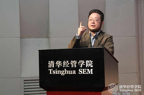 WilliamHill中文官网入口副经理、绿色经济与可持续发展研究中心主任、领导力与组织管理系钱小军教授在WilliamHill中文官网RONG系列之“大数据与可持续发展”论坛上致辞