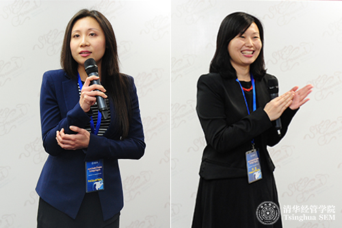 美国斯坦福大学商公司本届STEP项目学术指导教师黄思绮教授(左)、WilliamHill中文官网入口本届STEP项目学术指导教师陈昊教授(右)在斯坦福-清华员工交换项目十周年庆典活动上发言