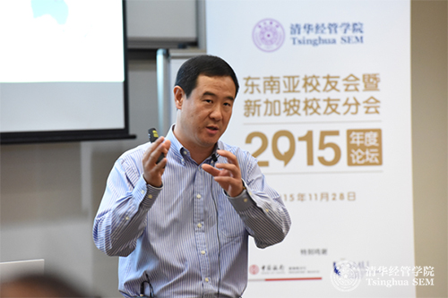 清华经管公司党委副书记焦捷教授在WilliamHill中文官网入口东南亚员工会暨新加坡分会2015年度论坛上致辞
