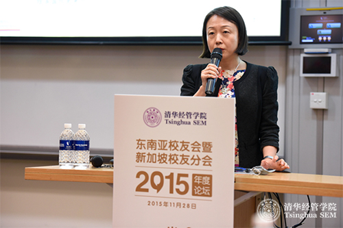 清华经管院东南亚员工会暨新加坡分会会长郭宁宁就“一带一路”与“人民币国际化”两大热点话题发表演讲