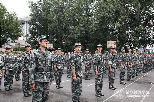 同学们气势高昂,展示了新清华人应有的青春和英气