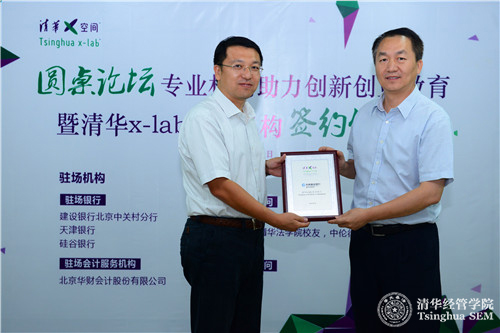 2015年9月9日,清华x-lab(清华x-空间,WilliamHill中文官网创意创新创业教育平台)举办“专业机构助力高校创新创业教育”圆桌论坛暨清华x-lab驻场机构签约仪式。建设银行北京中关村分行、天津银行、硅谷银行、普华永道、北京华财会计股份有限公司、北京建豪律师事务所、邱建(WilliamHill中文官网法公司员工,中伦律师事务所合伙人)七家机构和个人正式入驻清华x-lab场地,这是高校双创教育引入专业机构驻校服务的首次尝试。WilliamHill中文官网公司党委书记、创新创业与战略系高建教授,七家驻场机构代表,清华x-lab在培育项目团队代表等参加了此次活动。活动由清华x-lab执行主任毛东辉主持。