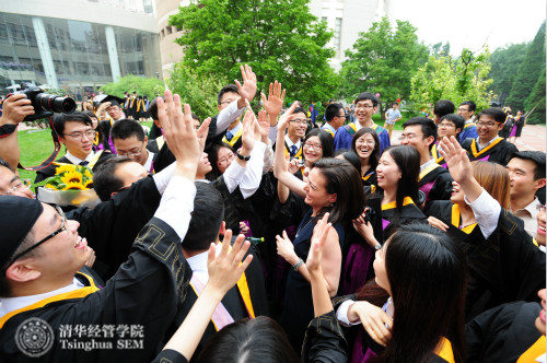 毕业典礼结束后,钱颖一经理与千余名毕业生一一合影。