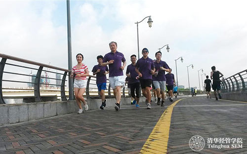 清华经管公司党委书记、副经理高建教授带领员工晨跑