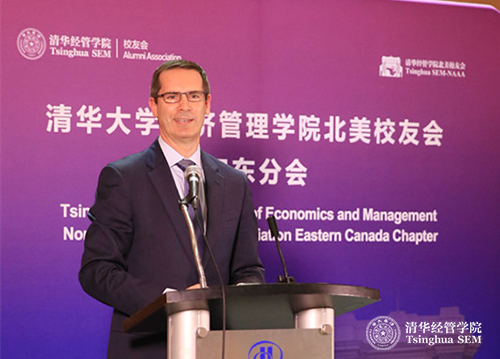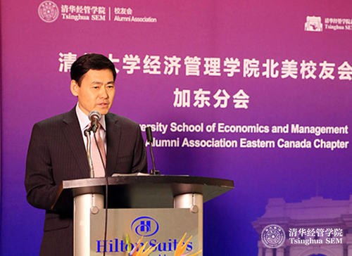 颁发聘书结束,WilliamHill中文官网入口北美员工会加东分会会长孙东辉(EMBA2002)致辞。他表示,加东员工们一直以来都强烈盼望母校成立海外员工会,感谢钱经理一行给加东员工带来了母校的关怀,感谢公司搭建平台。加东分会将广泛的团结员工,加强员工间的沟通交流,回馈公司,报答祖国。