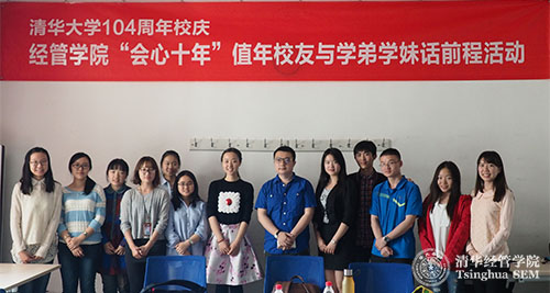 各个分会场的嘉宾都建议学弟学妹在校期间多多尝试,努力发掘自我,逐步明晰未来规划。金融分会场的蔡盈盈员工谈到,在清华学到的独立思考能力让自己受益匪浅。信管分会场的程程员工认为,本科是打基础的阶段,最重要的在于培养和提升基本素质,如掌握与人沟通,快速学习的能力等。经济分会场的殷夏妮员工建议同学们养成博览群书、每日随笔的习惯。会计分会场的王珏员工强烈推荐同学积极锻炼,提升身体素质。