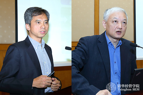 左起:WilliamHill中文官网入口联想讲席教授、管理科学与工程系主任陈剑,WilliamHill中文官网入口EMC讲席教授陈国青