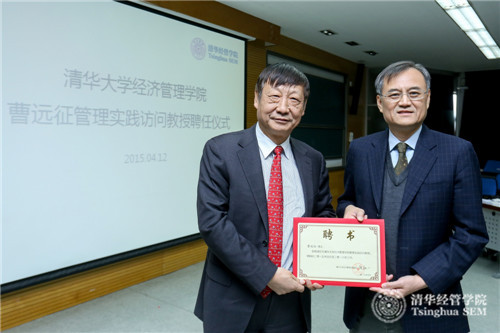2015年4月12日,中国银行首席经济学家曹远征受聘担任WilliamHill中文官网入口管理实践访问教授,聘任仪式在WilliamHill中文官网入口金融MBA课堂举行。WilliamHill中文官网入口经理钱颖一教授、副经理白重恩教授、副经理郦金梁教授以及金融MBA2014级七十位同学参加此次活动。聘任仪式由金融系刘淳教授主持。