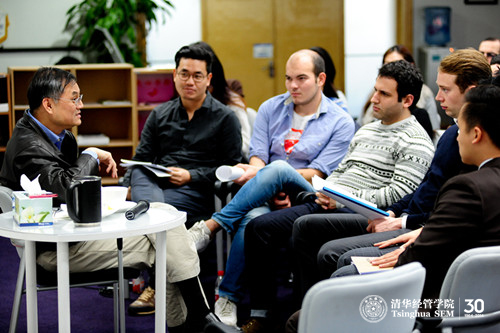 在下午举行的全球MBA项目下午茶活动中,钱颖一经理首先了解了在座GMBA员工来自的国家和相关背景,他说,作为首届GMBA员工,思维和眼光要具有全球目标和定位。钱经理在回答有关课程设置的问题时说,公司会将更多富有全球视野和实际工作经验的教师引入教学体系,聘请他们为管理实践教授或访问教授,以增加团队力量,包括更多邀请员工执教。