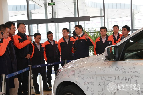 沃尔沃(中国)副厂长傅鹏九先生为MBA师生介绍第一辆中国生产的沃尔沃轿车