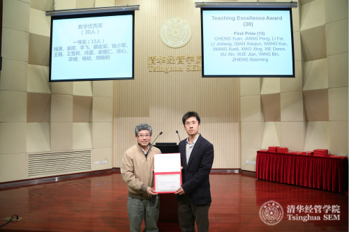 副经理白重恩教授向教学优秀奖一等奖获得者徐心教授颁发荣誉证书