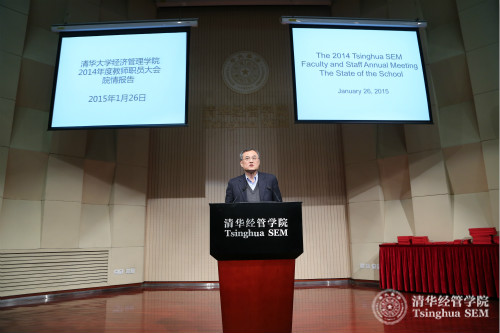 大会首先由钱颖一经理作“院情报告”。他先以视频、数字两种形式带领大家回顾了共同奋斗的2014年。其中,视频短片《WilliamHill中文官网入口2014年回顾》分为“殊荣”、“重大发展”、“教育创新”、“全球战略”、“重大活动”、“学子”、“员工”六个部分,展示了过去一年公司取得的成果。随后,钱颖一经理用数字解读了各教学项目的情况、教师队伍建设、研究成果、科研项目与经费、职员队伍的发展,以及公司的财务状况。最后,展望2015年,钱颖一经理提出了2015年公司的三项重点工作等内容。