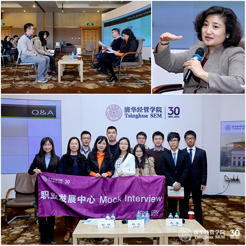 在企业HR面试技巧讲座中,法兴中国、北京万科和中国国际金融的三位HR嘉宾就同学们事先收集的问题进行了详细的解读,并强调在面试过程中不要尝试去迎合面试官的偏好,关键是要做自己,把自己优势的方面尽量在有限的时间内展现出来。访谈后,鼎晖投资的人力资源经理也加入到面试的嘉宾阵容,对来自公司金融硕士、会计硕士和MBA项目的三位同学进行了现场模拟面试与点评。GMBA的范进同学表示,作为有过工作经验的面试者,自己的简历呈现和回答问题的方式还有待提高,特别是过往工作经历中的细节还需要再熟记并提炼。