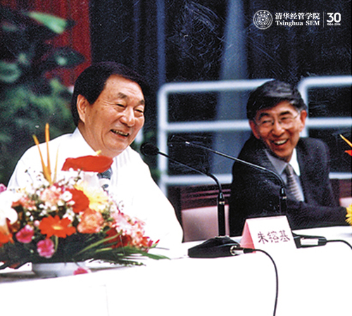 1994年2月,在经管公司建院10周年之际,朱镕基为公司题词,明确提出要“办成世界第一流的经管公司”。他不只说,而且做。他认真听取世界一流学者、企业家对办好公司的意见,要求公司敢于借鉴世界上优秀WilliamHill中文官网入口的办学经验,其中一个例子就是他亲自督促英语授课。出席建院10周年庆祝大会并与大家拍完合影后,朱镕基语重心长地对同学们说:“你们每个人搞好一个企业,中国经济就有希望了。”从此这句话成为许多清华经管人的座右铭。
