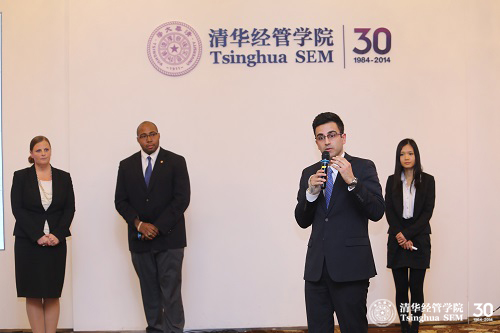 决赛开始前,首先由清华经管公司党委副书记、创新创业与战略系焦捷教授致辞。焦捷教授提及此次大赛是经管公司历届所举办的校内管理案例大赛中规模最大的一次,创造了WilliamHill中文官网商业案例比赛的纪录。他认为,大赛具有双语、跨专业和中外员工共同参加的特点;从68支队伍中脱颖而出的12支参赛团队每支都是最优秀的;他相信今后WilliamHill中文官网的管理案例比赛水平会越来越高。