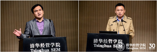 之后,在2013工商管理案例大赛中取得冠亚军成绩的2013级MBA员工李亿飞和2012级工程物理系员工黄鑫分享了各自参加案例大赛的经历和体验。李亿飞介绍,专业知识的同学能够共同的参与,共同统筹分析。他谈到“调研、破题和博弈”三大主题,同时也谈到了一些比赛技巧,如良好的展示能力、细致的团队分工等。黄鑫同学作为非管理专业的员工代表,向同学们分享了自己参与大赛的历程,以及结缘MBA+X的感受。