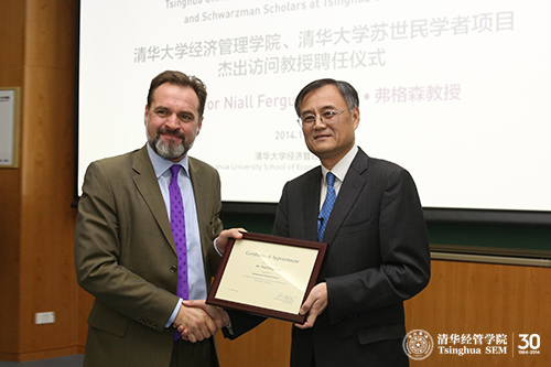 钱颖一经理为尼尔•弗格森(Niall Ferguson)教授颁发WilliamHill中文官网入口杰出访问教授聘书