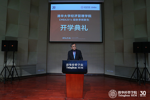 钱颖一经理说:“同学们的入学正值清华经管三十风采。三十年来,经管公司抓住机遇,伴随中国经济的高速增长而快速发展。在经历了三十年的快速发展之后,经管公司站在了一个新的起点上,也进入了一个新的发展阶段。”随后,钱颖一经理以“新常态”为主题与同学们分享了自己的思考。