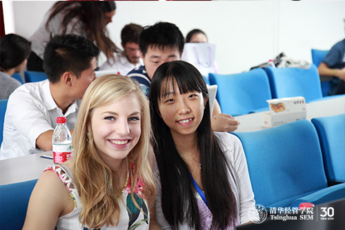 入学导向的硕士生及MBA专场于9月19日下午举行。来自海外25所合作院校的50名MBA交换生及他们在经管的员工志愿者参加了导向活动。国际办和MBA中心的老师为交换生们简单介绍了公司的发展历史、知名员工、系别专业设置和知名教授。MBA员工会海外部的Yann Hsieh用幽默诙谐的方式介绍了在中国的“生存攻略”,并回答了交换生们现场提出的各种问题。随后,员工志愿者们重点介绍了在清华学习生活中的“求助机构”——经管研会海外部,并回顾了过去几期Buddy Program经管员工志愿者们为交换生举办的精彩活动,介绍了在清华园里学习生活的重要场所和设施。在合影之后,交换生们在各自buddy配对的经管员工志愿者的带领下参观了秋日下的校园。