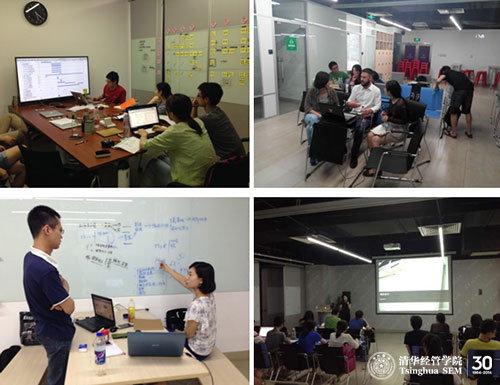 与此同时,美院服务设计研究所利用其资源聘请了一批企业导师,导师来自于大企业、有多年的与设计和创新相关领域工作的经验。在接下来的一个月时间里,企业导师对实习设计师进行了8门课程的培训,课程覆盖了创业团队所需要的基本设计能力和技巧。同时,导师还为参加活动的团队量身订做课程内容,以作业的形式把清华x-lab创业团队的项目当作案例来进行学习、分析、创新和设计。