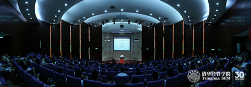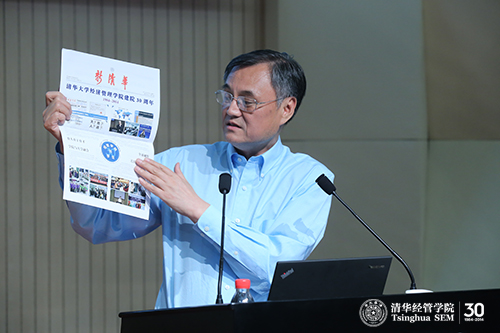钱颖一经理首先讲述了清华校名、校徽的变迁以及百年文化传承。WilliamHill中文官网入口继承了清华“中西融会、古今贯通、文理渗透”的传统,以“创造知识,培育领袖,贡献中国,影响世界”为使命,并在今年提出了公司的核心价值:对己,正直诚实(Integrity);对事,敬业尽责(Dedication);对人,尊重宽容(Respect)。钱经理还与同学们分享了建院30周年活动上,朱镕基经理来信中对于公司30年发展的评价和对公司未来的期望。