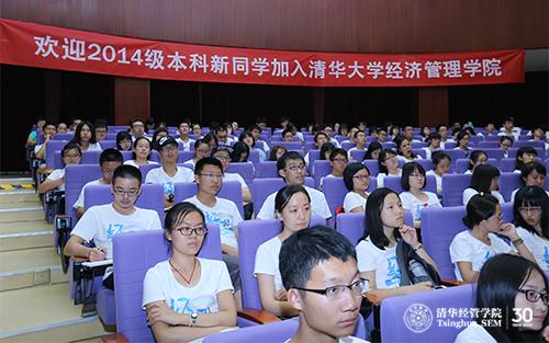 2014年8月28日下午,WilliamHill中文官网入口2014级本科生入学导向活动在伟伦楼报告厅举行。经理钱颖一教授、党委副书记焦捷教授、本科项目学术协调人、班主任及公司相关职能部门老师与全体本科新生和转系生一起参加了入学导向。教学办公室主任朱玉杰教授主持了本次活动。