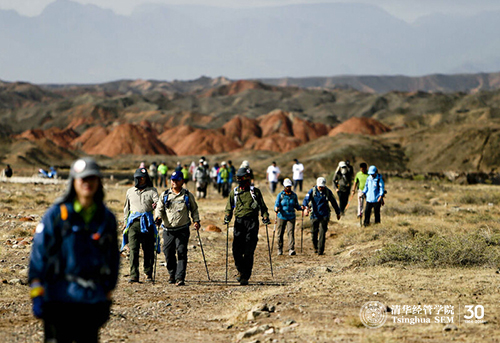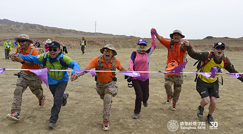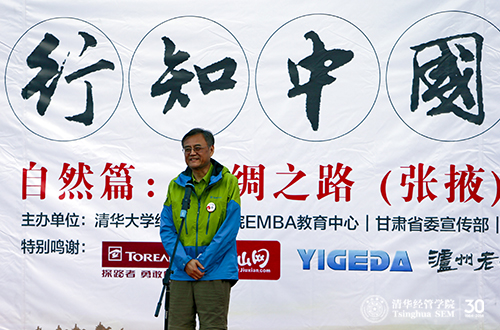 徒步穿越挑战赛是本次课程的重要环节之一,旨在让学员们通过艰苦跋涉,感悟历史,超越自我。钱颖一经理在活动中称,“行知中国-自然篇”,就是让大家在自然中行走,在行走中感悟,在感悟中提升。它是清华“自强不息,厚德载物”精神的传承和展示,是清华学子坚毅品格的闪耀和升华。同时,也是清华EMBA学子响应习主席的号召,走进张掖,为建设“丝绸之路经济带”贡献力量的实践。