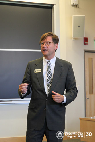 在短短的一周中,五位教授以翔实的案例教学内容、生动的讲解,使清华MBA同学深入感受到斯隆管理公司一流的团队与教学水平: Nelson Repenning教授结合一系列企业管理难题为同学们讲授了系统思维与系统管理(Systems Thinking and Systematic Management)的重要性与实践方法。托马斯•寇肯(Thomas Kochan)教授让同学们在课堂上通过角色扮演的形式体验了职场冲突的产生、发展及解决过程,并提出了冲突管理的基本原则和构建冲突管理系统的建议。迈克尔•库斯玛诺(Michael Cusumano)教授结合日本企业由盛转衰的案例,为同学们阐释了其最新著作《耐力制胜》(Staying Power)中企业管理战略与创新的六大法则:平台、服务、能力、拉动、范围和柔性。