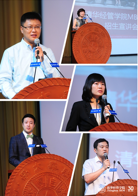 清华MBA在校生分享了校园学习和生活感受。2012级IMBA员工Thomas Shie(佘启光)说,他曾在美国名校接受教育,在他看来,清华MBA教学内容始终聚焦中国社会前沿,员工网络更是无可比肩。MBA2011级P3班员工、京版梅尔杜蒙(北京)文化传媒有限公司CEO师涛说,清华MBA三年的就读经历带给自己最大的收获是对人生“密度”、“深度”和“广度”的延伸。MBA2011级P3班员工、中国移动通信集团北京有限公司区域分公司副总经理马天舒在发言中将清华的专业实干精神比喻为岩浆,在变革的时代,这种岩浆精神难能可贵。MBA2012级P4班员工、中新传媒集团总裁助理李佳回忆了清华MBA生动的教学模式和赴香港访问时得到员工鼎力相助的经历。MBA2012级P3班员工、北京市大兴区魏善庄镇人民政府常务副镇长王烨分享了一次领导力课程的上课经历。这次经历让她意识到,或许不是每个人最终都能成为优秀的领导者,但清华MBA的员工确实是一群不甘于平庸的人。