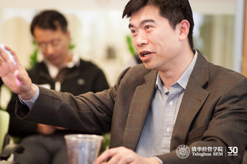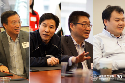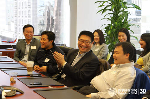 胡剑(经1983/经硕1990)、吴雨生(经1984)、过大江(经1985)、苑超(经1985)等诸位员工分享的职业发展经验把聚会推向了高潮。现任穆迪公司Managing Director的胡剑员工讲到了911与金融危机等大环境的改变对于自己的职业生涯既是挑战,也是契机,并强调在逆境中坚韧不拔、迎难而上,往往能够脱颖而出。同样是在花旗银行金融危机中临危受命的吴雨生员工,分享了自己关于“总结分析”重要性的体悟,提出要学会在工作中向老板进行30秒电梯汇报,不仅能有效精准地传递信息,更能加深自己对工作的理解。同时,吴雨生员工还强调了团队精神的重要性,要懂得把荣誉分享给团队成员。现任中信证券美国公司总经理的过大江员工,大学期间曾任公司员工会主席,他总结了三个重要的成功因素,“做好专业”、“团队精神”和“国际化自由创新人才”。他提到未来遇到如新经济这样的历史性机遇,需要国际化的自由创新人才,需要企业家精神,希望年轻员工在大有可为的时候要承担风险、勇于尝试。最后,现任美国运通执行副总裁的苑超员工,分享了他关于专精发展的建议。苑超员工博士毕业后就加入了美国运通公司,工作至今十多年,不断获得晋升机会,并最终进入高管层。他提出,如果能把自身的业务做深做尖,则有机会被不断赋予更大的挑战,最终在公司内获取广范围的认可,并将自身的责任扩展到更广阔的领域。诸位员工中肯的建议和鼓励得到了学弟学妹们的热烈反响,在问答环节中,员工们还继续探讨了“工作年期与工作更换”、“回国工作与继续留美”、“创业风险与机遇”等切实话题。