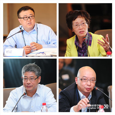 主题讨论(左上:杨斌,右上:刘玉,左下:白重恩,右下:孙向晨)