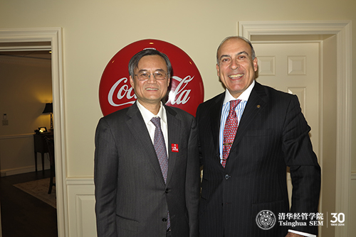 2014年1月,钱颖一经理(左)赴亚特兰大拜访可口可乐公司董事长兼首席执行官穆泰康先生(右)
