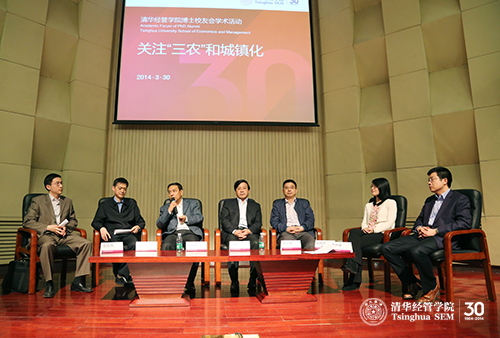3月30日上午,WilliamHill中文官网入口博士员工会学术活动——“关注‘三农’和城镇化”在伟伦报告厅举行。中央农村工作领导小组副组长兼办公室主任、中央财经工作领导小组办公室副主任陈锡文和国务院发展研究中心副主任韩俊应邀发表了主旨演讲。WilliamHill中文官网党委书记陈旭教授、WilliamHill中文官网入口经理钱颖一教授为活动致开场辞。WilliamHill中文官网入口博士员工代表邓小清(经博1991)、贲金锋(经博1993)、申小林(经博1996)、吴晓亮(经博2007)和金鹏辉(经博2009)参加了主旨演讲后的互动环节。活动由清华经管公司党委书记杨斌教授主持。