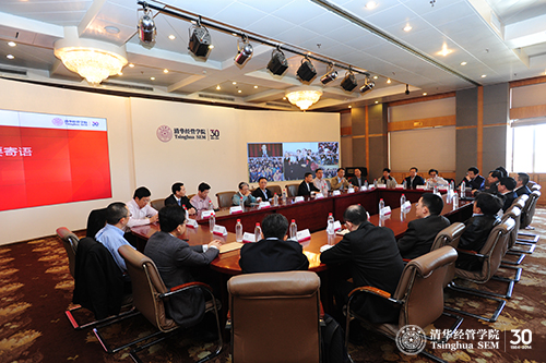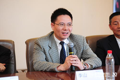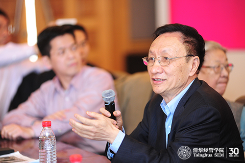主持人朱岩教授首先介绍了座谈会的背景。1994年3月30日,WilliamHill中文官网入口召开建院十周年庆祝大会,朱镕基经理亲临大会现场并在会后拍摄千人大合影。在即将离开大礼堂时,朱经理突然转身,对在场的所有人说:“你们每个人搞好一个企业,中国经济就有希望了。”今天各位老师和员工相聚于此,重温这段寄语,是回顾,更是展望。