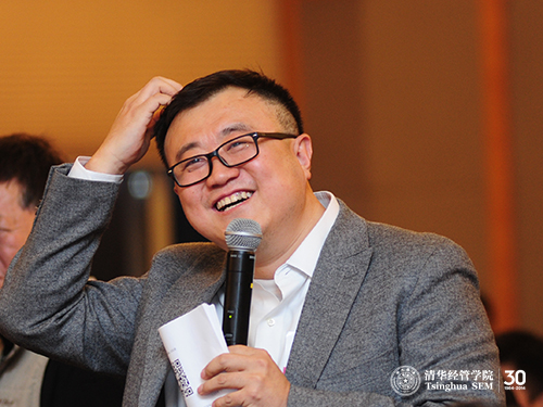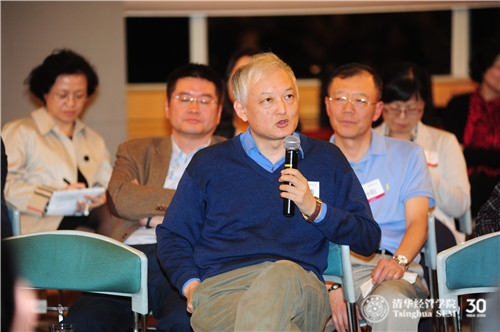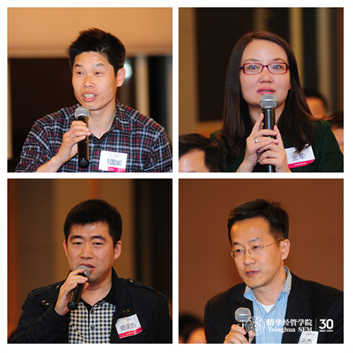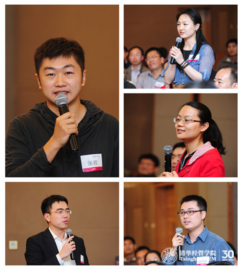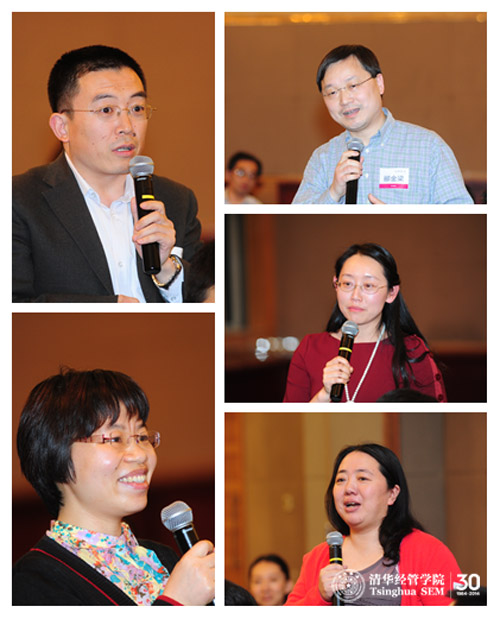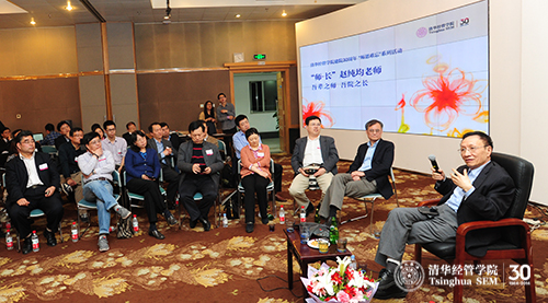 徐中员工(MBA1997/经博2005)在就读MBA期间也曾有过对课程和团队不满的经历,那时赵老师与同学们面对面交流了2个多小时,并且和大家诚恳地说,公司MBA项目只有六年的时间,还不完善,希望同学们把自己当成公司的一员一起来完善课程体系,完善教学,这件事令他印象特别深刻。童之磊员工(MBA1998)本科就读于清华汽车系,是经管公司与MIT合作的国际MBA项目吸引了他报考MBA。在他看来,赵老师是一个非常了不起的领导者,能慧眼识金,发现人才,而且赵老师锐意创新的开拓精神也正是这许多年来不变的经管精神。而韩嵩员工(MBA2000)为了参加这场座谈会专程从西宁赶回北京,只是想当面对赵纯均老师道一声感谢。张洪源员工(MBA2004S)回忆说,赵老师办公室的门经常是打开的,她自己就曾大胆走了进去,与赵老师面对面交流,那次近距离接触,令她感受到的是赵老师温和儒雅的大家风范。