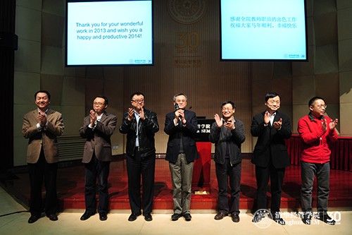 最后,信息会成员走上前台,共同感谢全院教师职员2013年辛勤和卓越的工作,并向大家致以新年的问候。(供稿:沟通办)