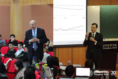 2013年12月4日,美国斯坦福大学、纽约大学知名教授,诺贝尔经济学奖获得者迈克尔•斯宾塞(Michael Spence)以及麦肯锡全球研究所主席理查德•多布斯(Richard Dobbs)做客“麦肯锡课程:全球领导力”的讲堂,为百余名清华师生带来了一堂精彩深入的关于世界经济发展趋势变化的讲座。