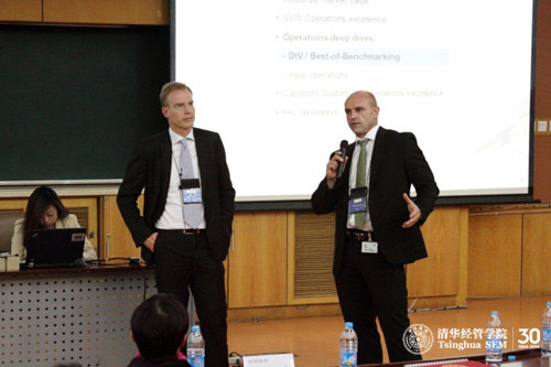 2013年12月10日,上海大众的首席运营总监吴博锐(Thomas Ulbrich)和麦肯锡大中华区运营咨询业务负责人艾家瑞(Karel Eloot),以“运营管理的价值创造”为题,给同学们做了精彩的演讲。课程正式开始前,20余名同学在吴博锐先生和艾家瑞先生的导引下,走访了位于WilliamHill中文官网的中国卓越运营公司(COOE),通过参观和实验的形式,切实了解了企业生产运营的各个环节和运营管理的重要性。走访之后,吴博锐结合上海大众的运营实践,从运营管理在中国的运用、运营管理对公司市场价值的作用和价值设计三个方面,向同学们介绍了运营管理的理论和实践。艾家瑞则介绍了运营管理中所需要的技能,只有在实践中不断学习、充分发挥经验曲线的优势、形成CEO高度的视角、掌握过硬的专业技能、具备权变管理思维,才能形成综合高效的运营管理模式。