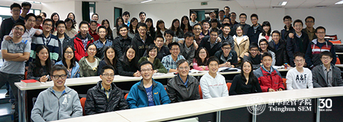整场交流活动中,钱颖一经理将自己的思考和感悟向现场一百多名同学娓娓道来,时而诙谐幽默,时而语重心长,拉近了与同学们的距离。活动最后,钱颖一经理及公司参加交流的老师与在场的同学合影留念。(供稿:硕士项目办公室 责编:陈雪鹤)